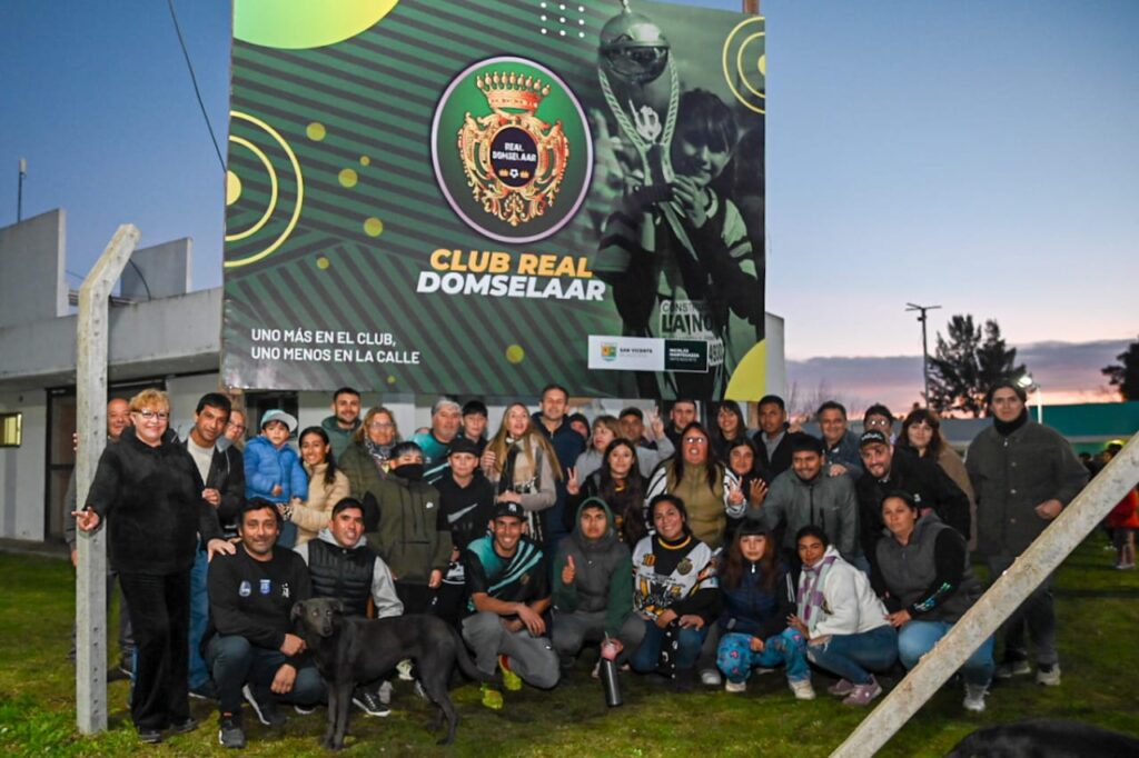 Por otra parte, el jefe comunal visitó el Club Real Domselaar junto a su presidente, Horacio “Pato” Romero, miembros de la comisión directiva, familias y jugadores. Durante el encuentro, se anunciaron mejoras en la iluminación y el cerramiento del predio, además de confirmar que próximamente la institución contará con la titularidad de dominio del espacio donde actualmente desarrollan sus entrenamientos.