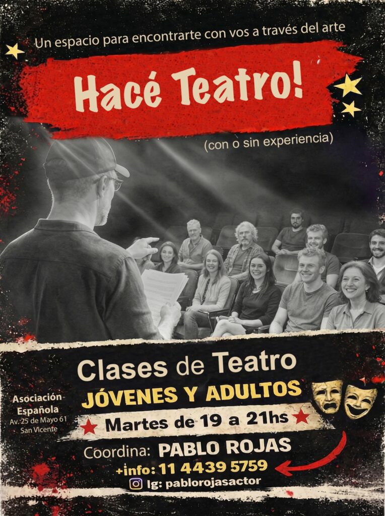 Si queres conocer más detalles y comenzar las clases de Teatro, comunicate al 11 4439 5759 o en Instagram, en su cuenta @pablorojasactor